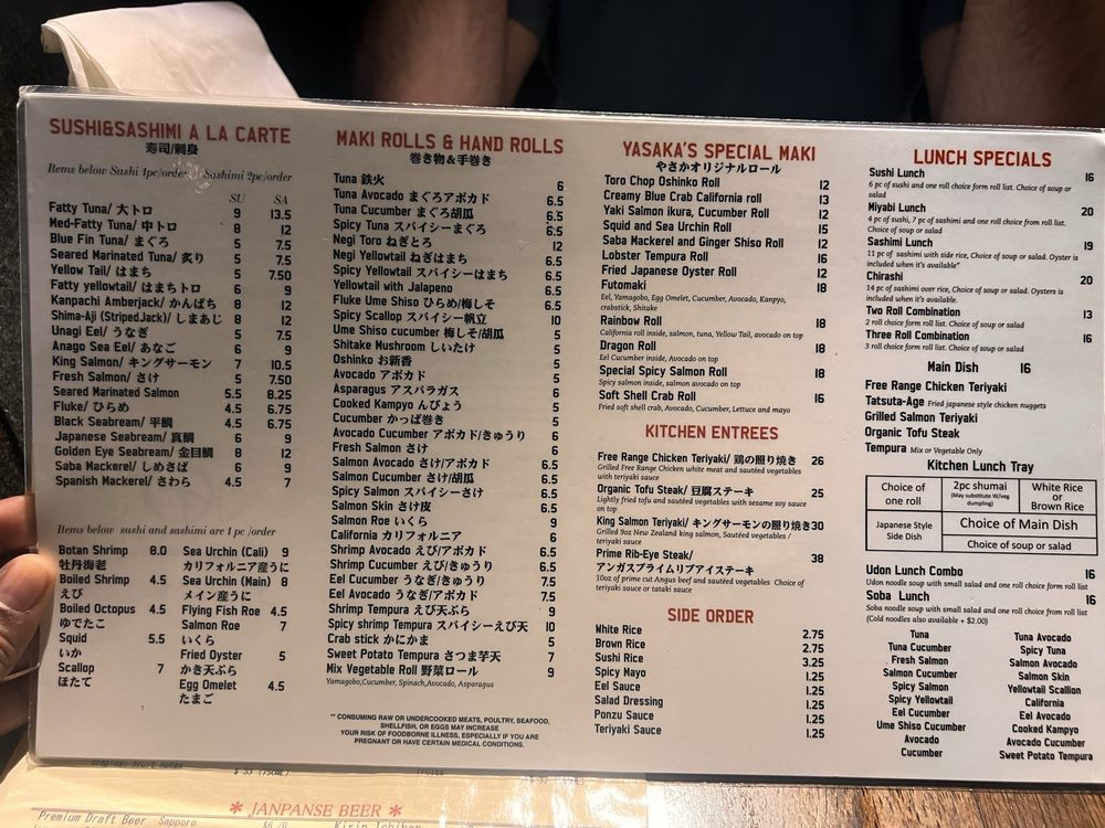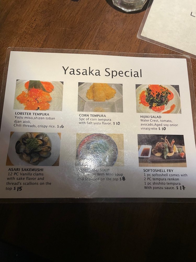 Sushi Yasaka, located in New York City, offers a casual dining experience with a focus on fresh sushi and Japanese cuisine. The menu includes a variety of kitchen appetizers such as edamame, hijiki, and gomaeae, along with sushi bar appetizers like usuzukuri and toro tartare. Customers rave about the quality of the fish, with highlights being the buttery smooth salmon and the heavenly beef negimaki. The ambiance is cozy and welcoming, perfect for a date night or a casual meal with family or friends. The lunch specials are a great value, with options like the Miyabi Lunch and the Two Roll Lunch receiving high praise. Sushi Yasaka is known for its top-notch quality, consistent service, and affordable prices, making it a go-to spot for sushi lovers in Manhattan.